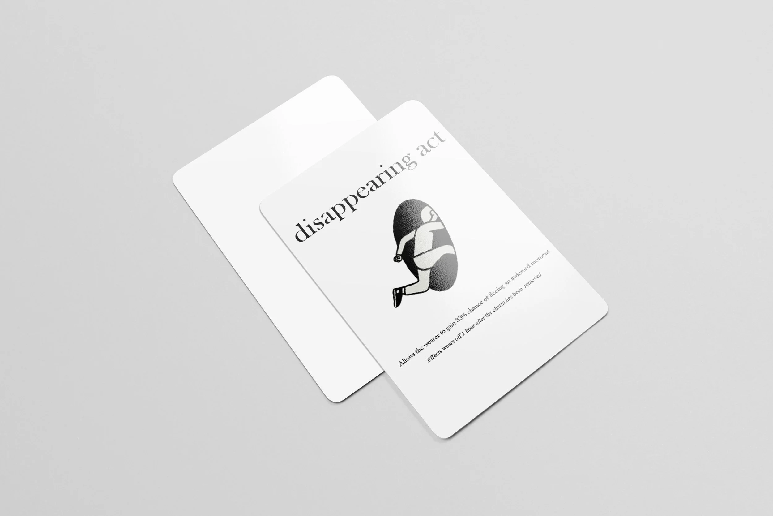 DISAPPEARING ACT : Allows the wearer to gain 30% chance of fleeing an awkward situation.